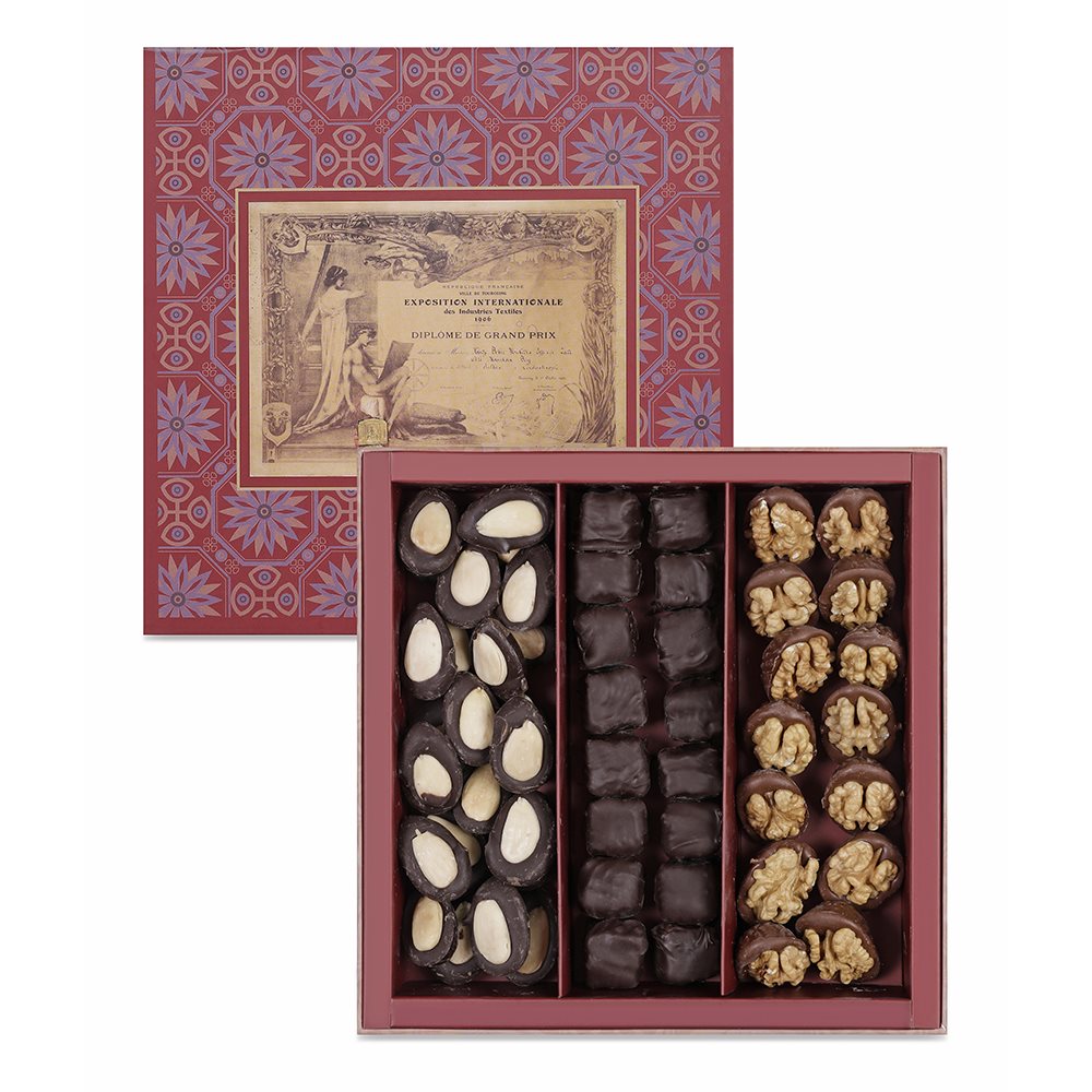 The unique taste created by the combination of extra pistachio lokums and chocolate is presented in this box, accompanied by walnut and almond madeleines made with the special Hacı Bekir chocolate formula using top quality cocoa butter and cacao beans.