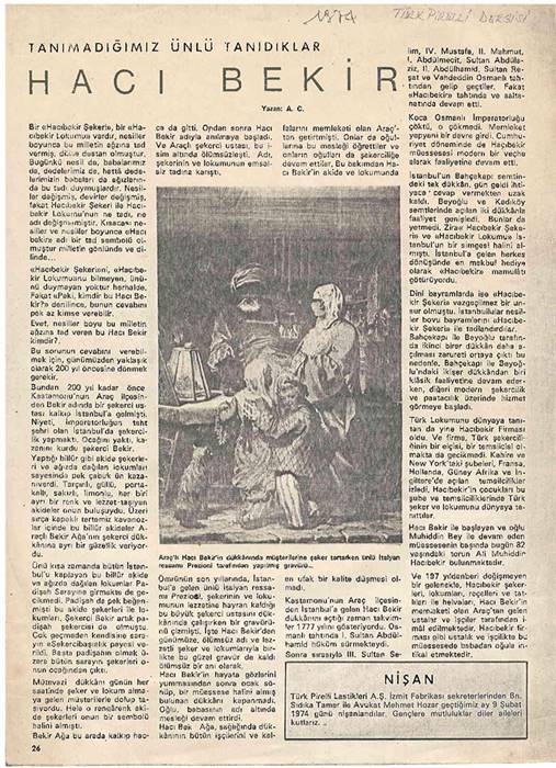 Hacı Bekir Müessesesi, kuşaklar boyunca edinilen ve geliştirilen deneyimlerle şekerleme dünyası ve sanatı üzerine bilgi birikiminin en yüksek noktasına ulaşmıştır.