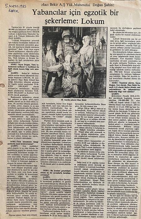 Hacı Bekir Müessesesi, kuşaklar boyunca edinilen ve geliştirilen deneyimlerle şekerleme dünyası ve sanatı üzerine bilgi birikiminin en yüksek noktasına ulaşmıştır.