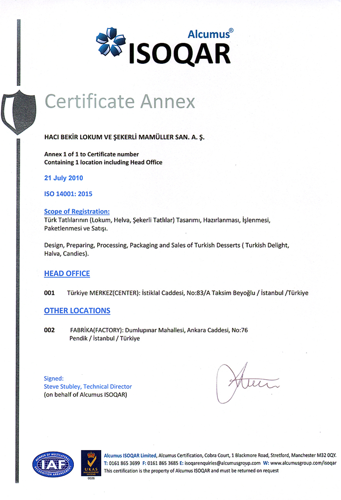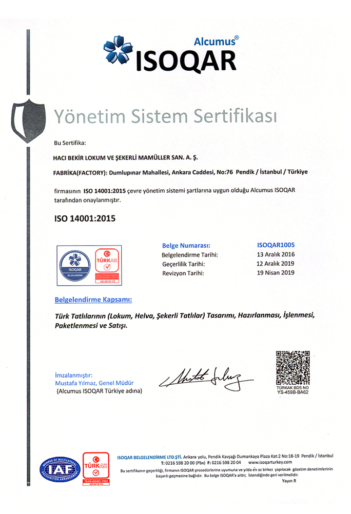 HACI BEKİR Firması, hedeflerini çalışan personelini eğiterek, tüm personelinin bilinçlenmesini sağlayacak ve Kalite, Çevre ve Gıda Güvenliği Politikasını sürekli gözden geçirecektir. HACI BEKİR Firması, bu politika ve hedeflerinin temiz çevre ve doğa içinde tahakkuk edeceğine inanarak bu hususları gerçekleştirmeyi ve geliştirmeyi taahhüt eder.